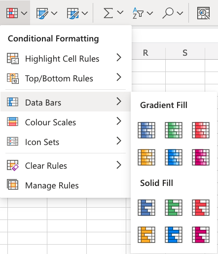 - Select the "Green Data Bars" color option from the Gradient Fill menu