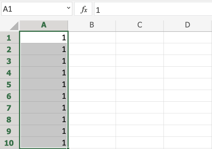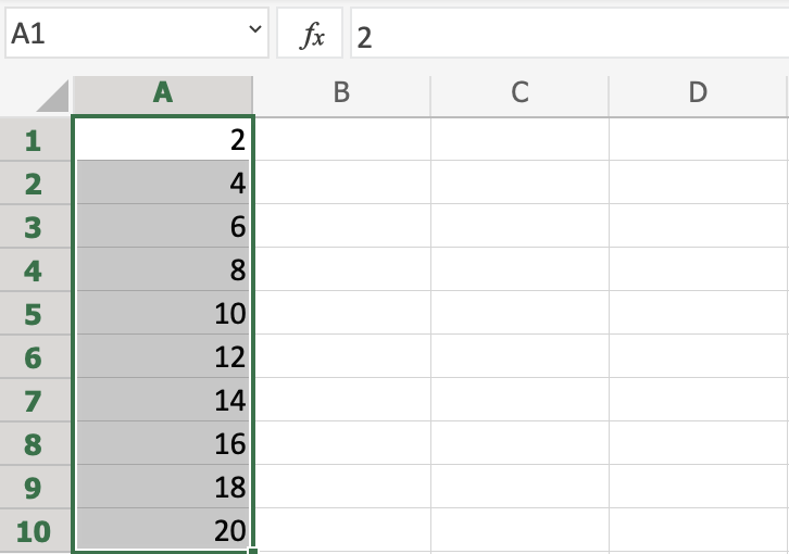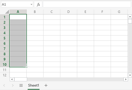 In this example, cell A1 was selected and the range A1:A10 was marked.