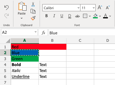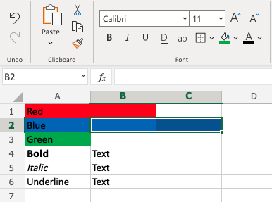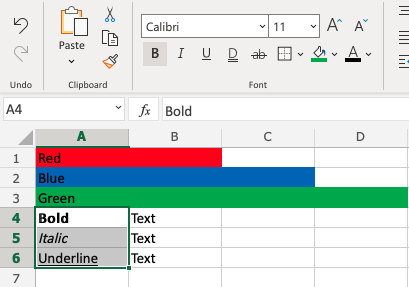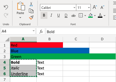 Let's try some examples and copy formats with Colors and font Characteristics, such as bold, italic and underline:
