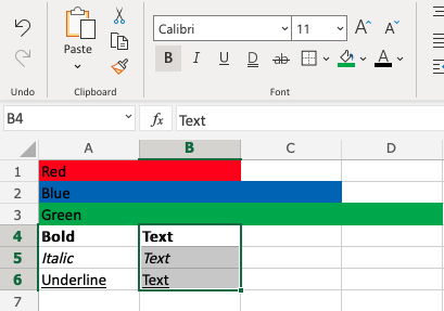 Last example. Copy the Font Characteristics from A4:A6 to B4:B6.