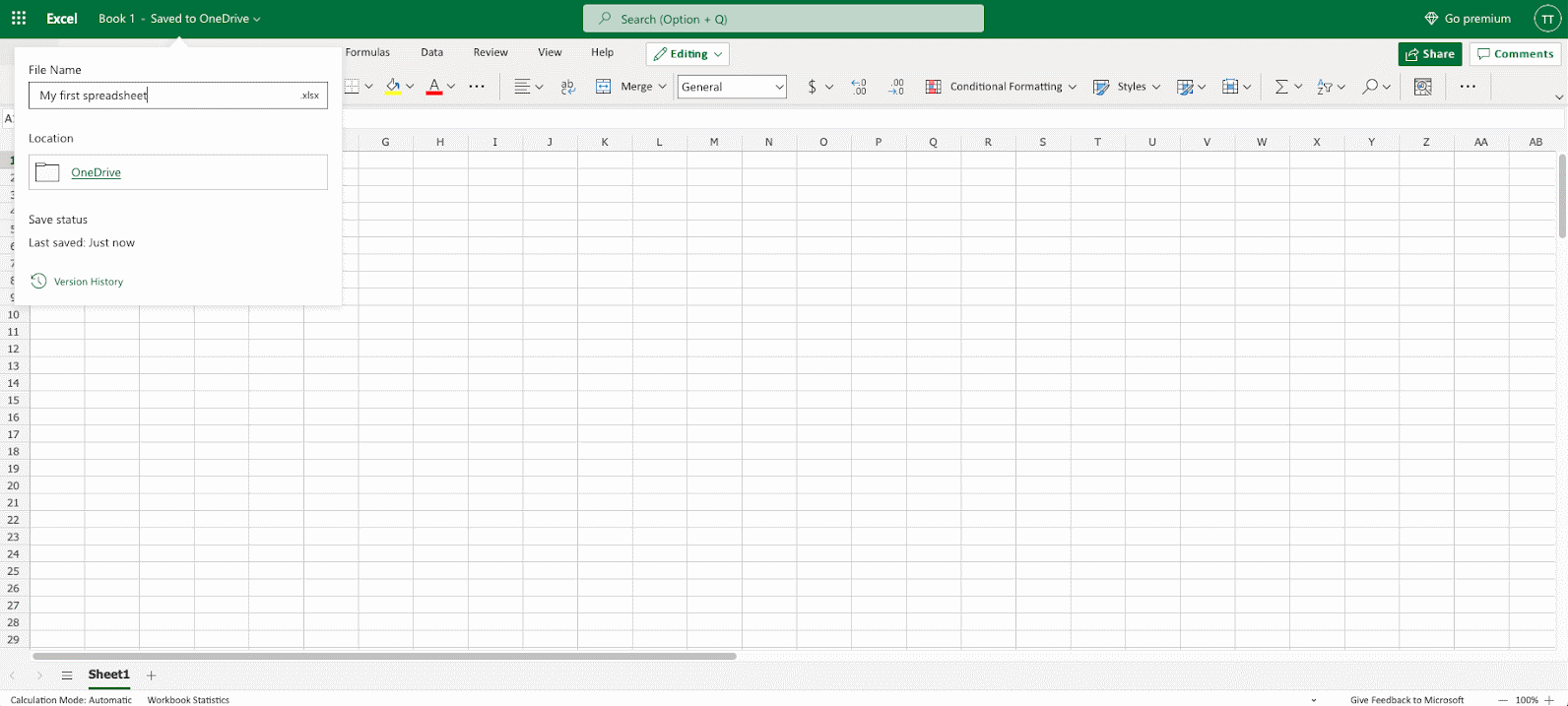After entering the Excel application, click on the New blank workbook button to get started with a new workbook.