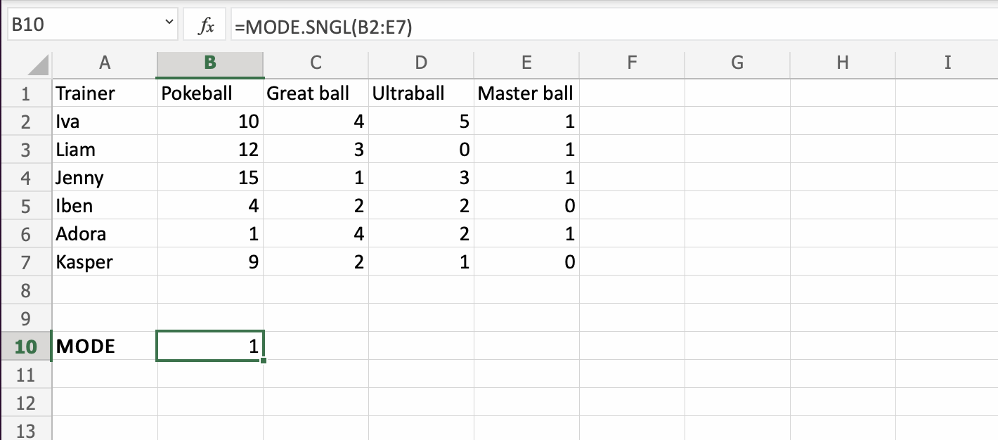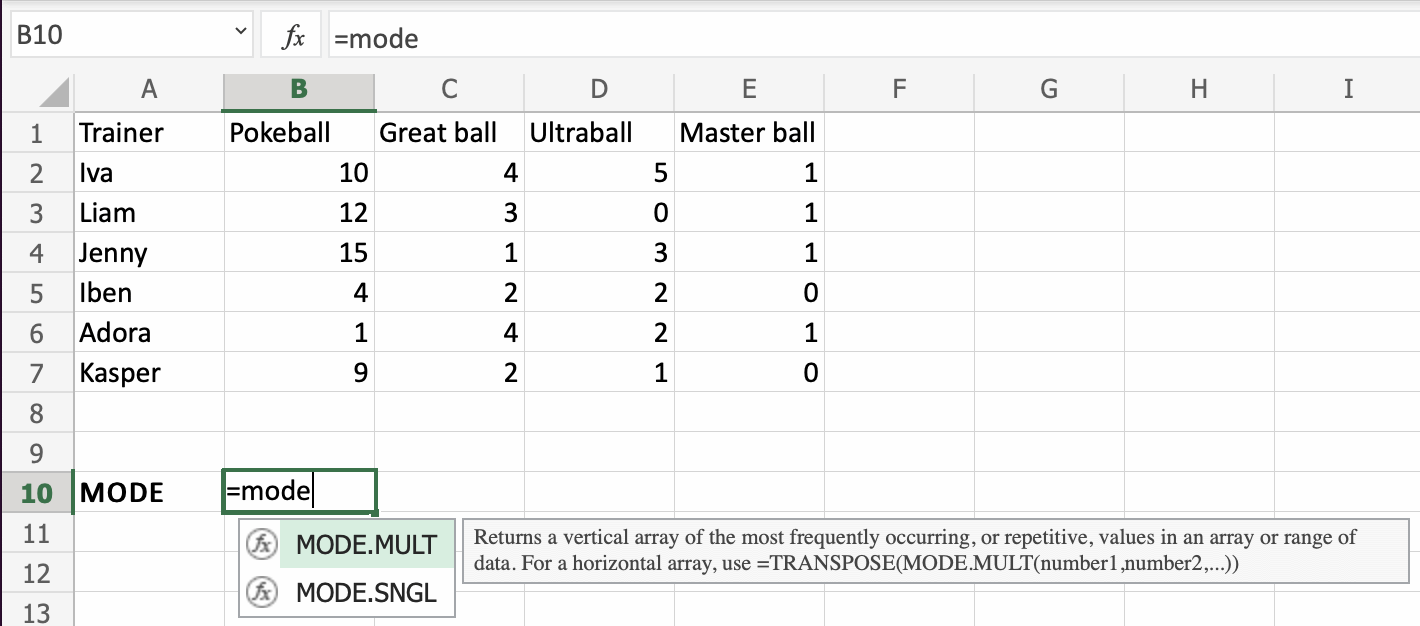 Let's have a look at an example where we help the Pokemon trainers to calculate the mode of numbers of Pokeballs.
