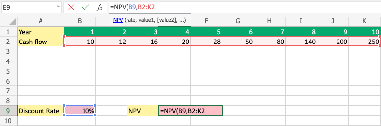 Congratulations! you have just calculated the NPV for ten years using a discount rate of 10%