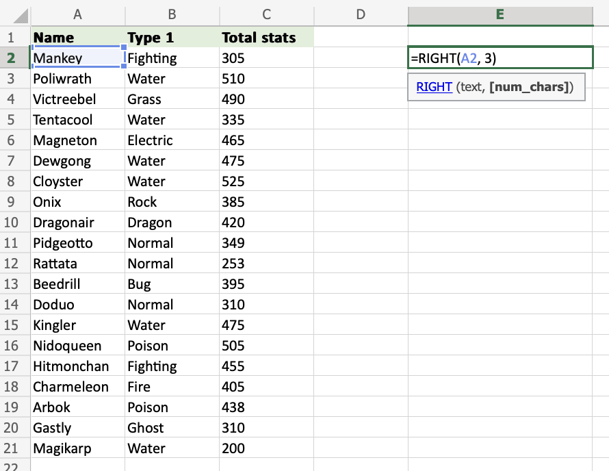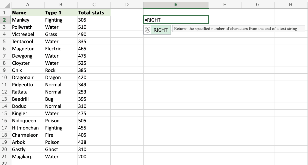 Excel RIGHT Function