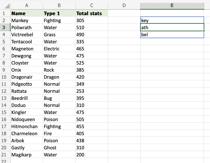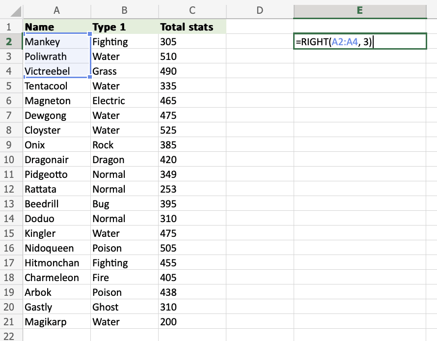 A2:A4) and define the length of characters you want to retrieve, using a,as a delimiter (A2:A4,3) - Hit enter