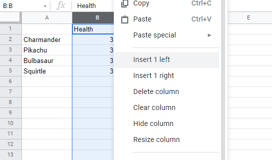 Right click on the column and select Insert 1 left to insert a column on the left side of the current column: