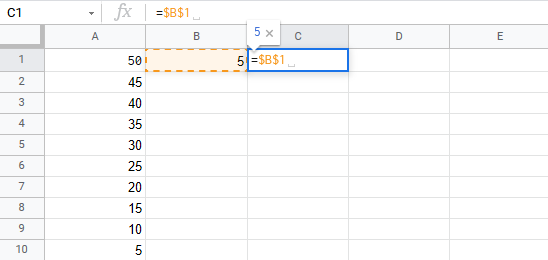 Great! You have successfully used absolute reference to add B1(5) with the range A1:A10.