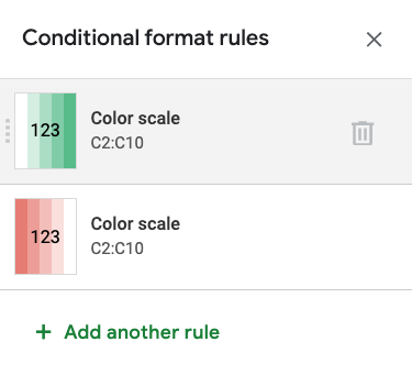 Note: Google Sheets can customize the color and behaviour of color scale conditional formatting.