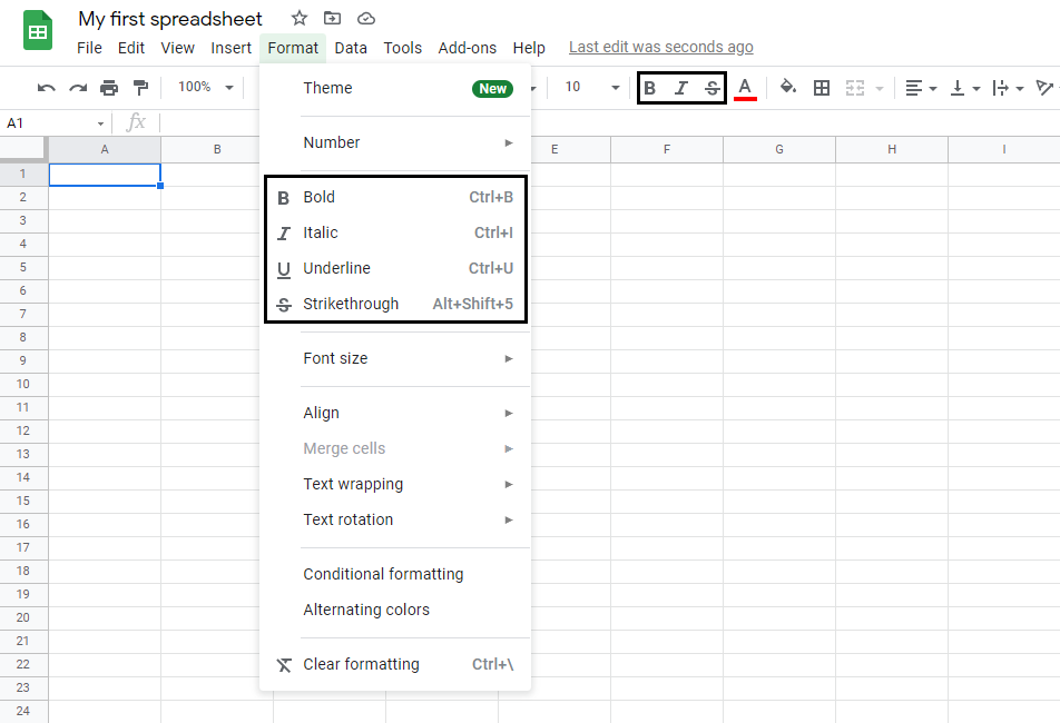 ) option in the Format menu or using the keyboard shortcut Ctrl+U or Command+U