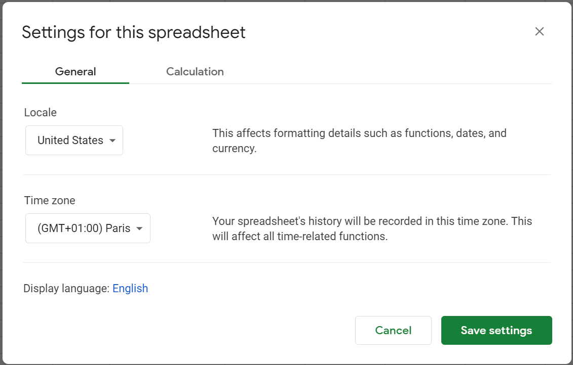 Google Sheets provides regional formatting settings for different languages and styles of presenting information.
