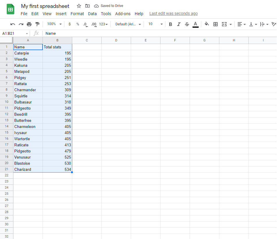 Well Done! You have successfully sorted the Pokemon by their total stats.