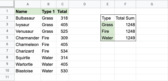Now, we can see the sum of total stats for the different types of Pokemon: