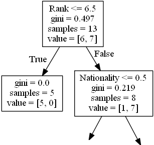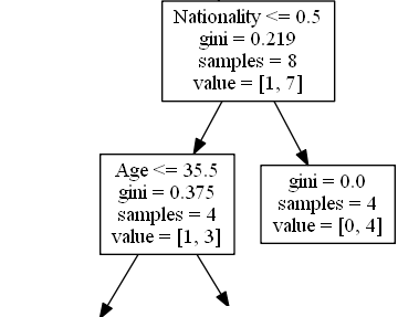 with a nationality value of less than 0.5 will follow the arrow to the left