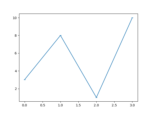 #Three lines to make our compiler able to draw: import sys import matplotlib matplotlib.use('Agg') import matplotlib.pyplot as plt import numpy as np ypoints = np.array([3, 8, 1, 10]) plt.plot(ypoints, marker = '_') plt.show() #Two lines to make our compiler able to draw: plt.savefig(sys.stdout.buffer) sys.stdout.flush()